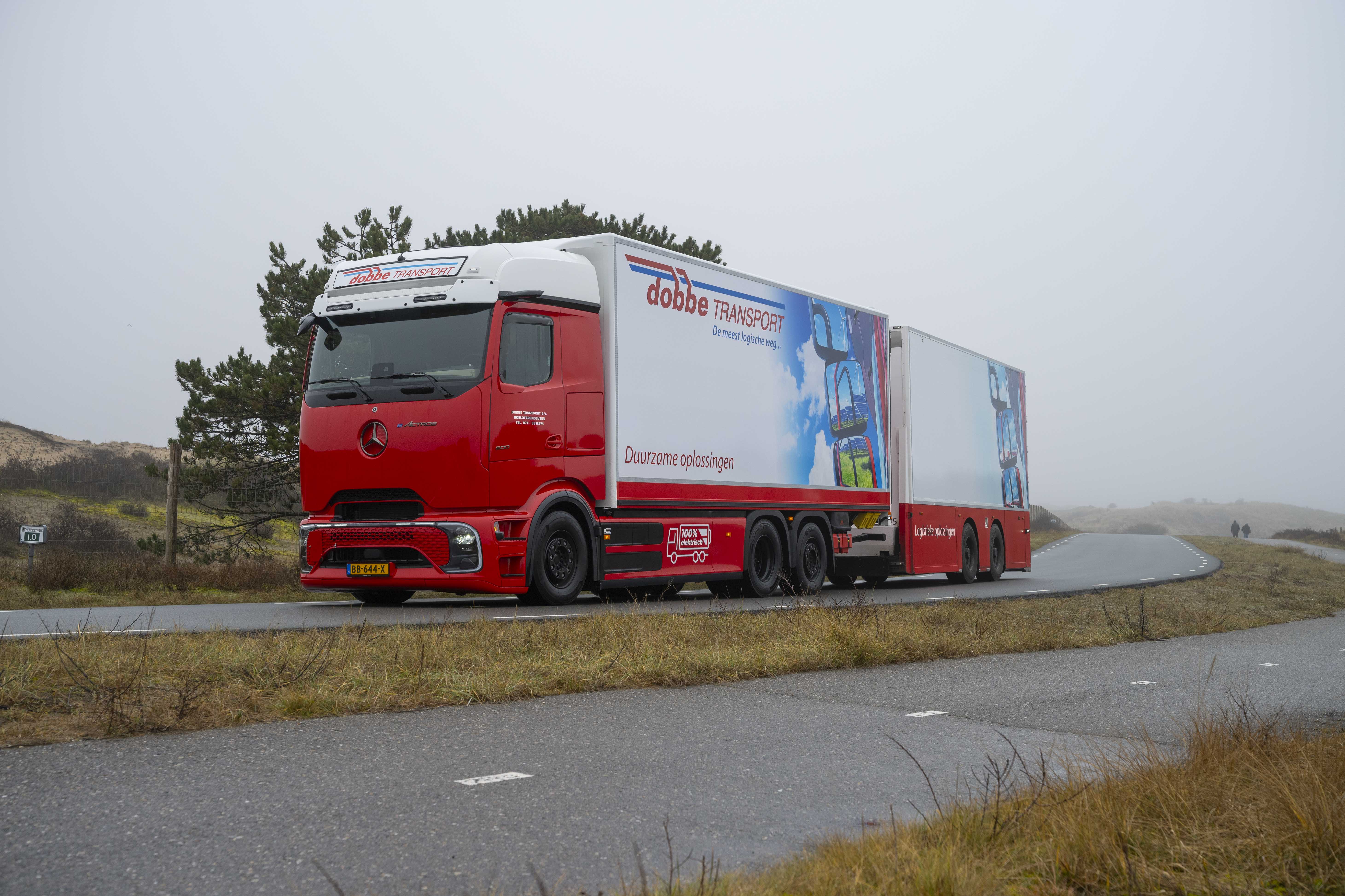 Zakupując Mercedesa-Benz eActrosa 600 6×2 jako podwozie ze skrętną osią wleczoną, Dobbe Transport świadomie postawił na maksymalną użyteczność i ładowność w transporcie bezemisyjnym. Dodatkowa oś zwiększa dopuszczalne obciążenie osi i optymalnie rozkłada masę pojazdu, umożliwiając przewóz większej ilości ładunku bez przeciążania napędzanej osi tylnej. Dzięki podwójnemu zaczepowi dyszlowemu pojazd jest wyjątkowo elastyczny w użytkowaniu z różnymi urządzeniami holowanymi, w tym przyczepami centralnoosiowymi, przyczepami z dyszlem i przyczepami piętrowymi – z kilkoma pokładami ładunkowymi. eActros 600 będzie wykorzystywany głównie do transportu drobnicowego w krajach Beneluksu, a docelowo ma rocznie pokonywać około 125 000 kilometrów bez emisji spalin. Dyrektor zarządzający Eric Dobbe, stwierdza „Ten zakup stanowi odpowiedź na podatek od pojazdów ciężarowych, a wkrótce także na ETS2. Dzięki temu pojazdowi Mercedes-Benz Trucks dysponuje sprawdzoną koncepcją, do której mamy pełne zaufanie, dzięki akumulatorowi o pojemności 621 kWh i bardzo dużemu zasięgowi. Pozwala nam to reagować na rosnącą liczbę stref zerowej emisji spalin, a jednocześnie obsługiwać naszych klientów, którzy chcą zmniejszyć swój ślad węglowy”.