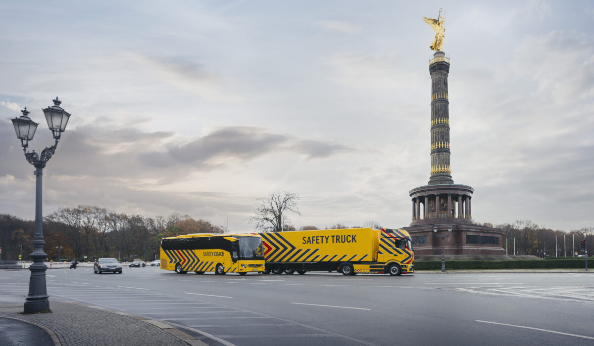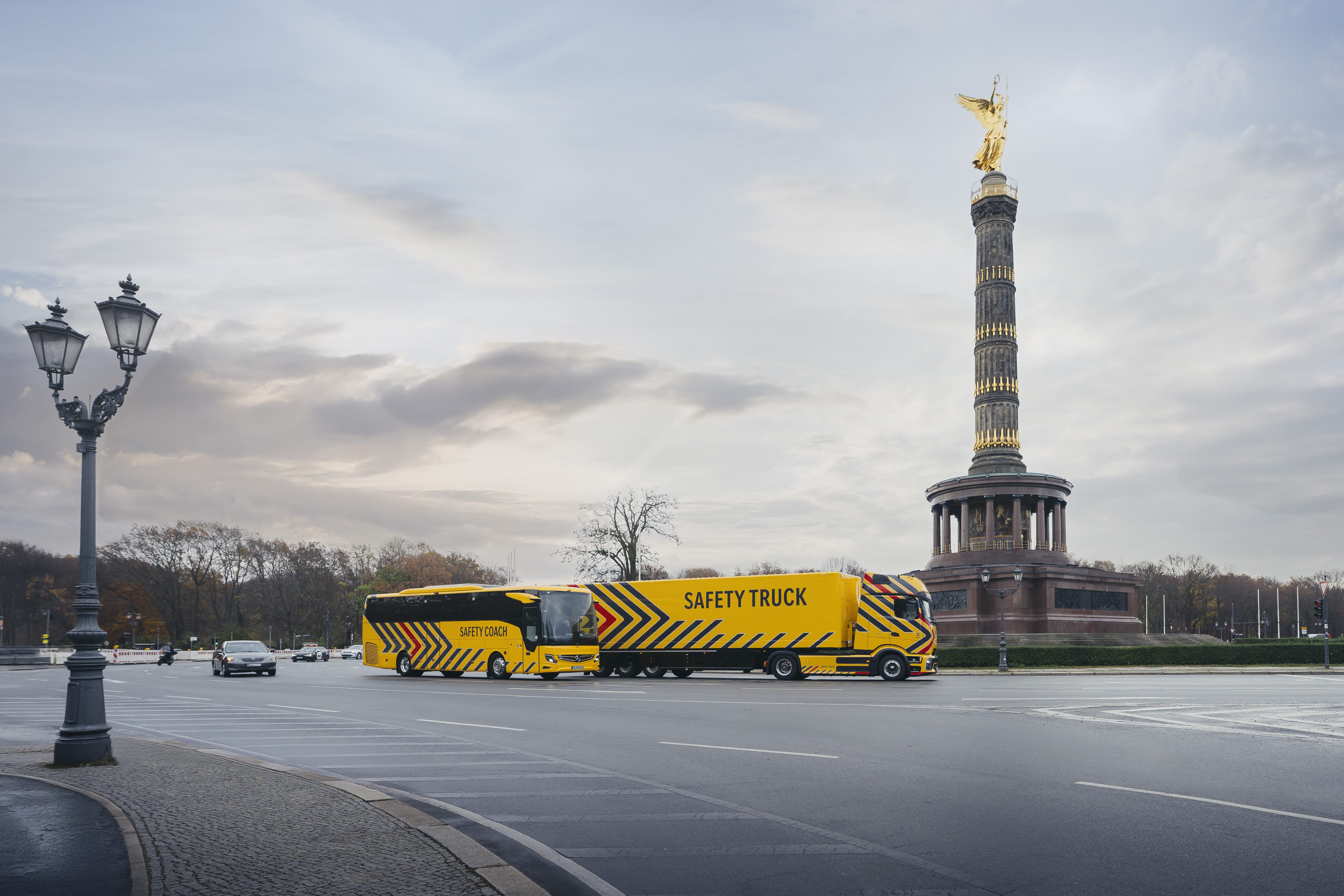 Aktywne wsparcie nowej inicjatywy „Niemcy się przyglądają” przez stowarzyszenie Blicki e.V. z pojazdami i miejscami wydarzeń w przyszłym roku. Pierwsze pojawienie się nowego „Mercedes-Benz Safety Truck” w Berlinie – elektryczna ciężarówka dalekobieżna eActros 600 Zmiana parametrów bezpieczeństwa w związku z rosnącą elektryfikacją Segmenty Daimler Truck, Mercedes-Benz Trucks i Daimler Buses, wspierają nową, ogólnokrajową inicjatywę „Deutschland schaut’s” (Niemcy patrzą na to) stowarzyszenia Blicki e.V. Stowarzyszenie to dysponuje siecią ekspertów w zakresie przyjaznego dzieciom nauczania o mobilności i do tej pory w całym kraju przeszkoliło ponad 90 000 dzieci. Inicjatywa, która rozpocznie się w 2026 roku, koncentruje się między innymi na nowych wyzwaniach dla bezpieczeństwa ruchu drogowego wynikających z rosnącej elektryfikacji tego ruchu: na przykład na zmianie zachowań za kierownicą i nowym poziomie hałasu. Ciężarówki i autobusy, jako duże i ciężkie pojazdy, mają szczególne znaczenie dla bezpieczeństwa ruchu drogowego, gdyż w razie wypadku często mogą powodować poważniejsze konsekwencje. Mercedes-Benz Trucks i Daimler Buses realizują wizję bezwypadkowej jazdy i koncentrują się na aktywnych i pasywnych systemach bezpieczeństwa oraz na szkoleniach i edukacji kierowców. Producenci konsekwentnie napędzają transformację w kierunku zelektryfikowanych ciężarówek i autobusów i, jako dwaj pionierzy w branży, mają już liczne modele elektryczne produkowane seryjnie. Dwa segmenty Daimler Truck oferują dodatkowe systemy bezpieczeństwa dla tych pojazdów. Zapewnią także pojazdy oraz punkty sprzedaży i serwisu na potrzeby szkoleń dla niemieckiej inicjatywy „Straż Niemiec”. Wieloletnia inicjatywa „Straż Niemiec” ma na celu podniesienie świadomości na temat większej rozwagi, ostrożności i przewidywania w ruchu drogowym. Jej nadrzędnym celem jest promowanie nowego rodzaju współpracy na drogach – czegoś, co zyskuje na znaczeniu, szczególnie w dobie e-mobilności. Kolejnym kluczowym motywem jest coraz bardziej agresywne zachowanie na drogach: według niedawnego badania przeprowadzonego przez ADAC (Niemiecki Automobilklub), dwie trzecie kierowców dostrzega rosnący poziom agresji na drodze. Inicjatywa ta celowo stara się przekazać przesłanie o większym wzajemnym szacunku. „Straż Niemiec” startuje w Saksonii, Bawarii, Hesji, Berlinie i Hamburgu i będzie angażować kolejnych zwolenników ze świata biznesu, sportu i społeczeństwa. Koncentruje się na edukacji, w szczególności dla dzieci w wieku przedszkolnym i wczesnoszkolnym oraz ich rodzin. Poza tym ma na celu podniesienie świadomości. Aktualne dane Federalnego Urzędu Statystycznego podkreślają znaczenie inicjatywy: według tych danych, w 2024 roku co 19 minut jedno dziecko zostało ranne lub zabite w ruchu drogowym. Odpowiada to około 27 260 dzieci poniżej 15. roku życia. Średnio każdego dnia w wyniku wypadku drogowego ginęło osiem osób, co daje łącznie 2770 ofiar. Według najnowszych danych UE opublikowanych w lutym 2025 roku., opartych na bazie danych CARE, w 2023 roku. około 90% ofiar śmiertelnych w wypadkach z udziałem ciężarówek o masie powyżej 3,5 tony stanowiły osoby, które nie były pasażerami tych pojazdów. Większość ofiar śmiertelnych to byli pasażerowie aut osobowych – około 50%, następnie piesi – około 15%, rowerzyści – około 15%i kierowcy około 6% ofiar śmiertelnych. W wypadkach autobusowych około 20% ofiar śmiertelnych stanowili pasażerowie autobusów – ich pasażerowie i kierowcy – oraz także około 34% pasażerów aut, około 29% pieszych i około 9% rowerzystów. Achim Puchert: „Ciężarówki napędzają gospodarkę i nasze życie, a zatem stanowią integralną część ruchu drogowego. Jako wiodący producent w Niemczech pod względem udziału w rynku, zdajemy sobie sprawę z naszej szczególnej odpowiedzialności i chcemy, aby nasze pojazdy zapewniały wysoki poziom bezpieczeństwa kierowcom i innym użytkownikom dróg. W tym celu oferujemy najnowocześniejsze systemy wspomagania i stale je rozwijamy. Zawsze będą istniały ograniczenia techniczne, a odpowiedzialność pozostanie po stronie kierowcy również w przyszłości. Jednak bezpieczeństwo na drogach można w pełni osiągnąć jedynie poprzez odpowiedzialne działania wszystkich zaangażowanych. Z niecierpliwością oczekujemy aktywnego udziału w inicjatywie „Niemcy się przyglądają” – szczególnie w odniesieniu do nowych wymagań stawianych przez napędy elektryczne”. Till Oberwörder: „Autobusy są niezbędne dla naszego społeczeństwa – łączą ludzi i zapewniają mobilność wszystkim pokoleniom. Bezpieczeństwo na drogach zawsze było dla nas najwyższym priorytetem, a jako lider w branży autobusowej w Niemczech pod względem udziału w rynku, możemy coś zmienić: stale inwestujemy w nowoczesne technologie i kompleksowe szkolenia kierowców, aby zwiększyć bezpieczeństwo wszystkich – naszych kierowców oraz pasażerów, rowerzystów i pieszych. Jesteśmy zaangażowanymi partnerami tej inicjatywy i chcemy wspólnie promować większą rozwagę, ostrożność i dalekowzroczność w ruchu drogowym – szczególnie w kontekście e-mobilności”. Patrick Schnieder, federalny minister transportu – „Bezpieczeństwo dzieci i młodzieży na drogach jest dla mnie szczególnie ważne. Aby móc bezpiecznie poruszać się w ruchu drogowym, dzieci i młodzież od najmłodszych lat muszą uczyć się uważnej obserwacji i rozumienia ruchu drogowego. Na przykład w ramach projektu „Blicki Blick’s” uczniowie dowiadują się, czym jest martwy punkt i jakie niebezpieczne sytuacje z niego wynikają. Dzięki temu i wielu innym projektom profilaktycznym już od najmłodszych lat uwrażliwiamy naszych młodych użytkowników dróg na zagrożenia w ruchu drogowym, w ten sposób prz