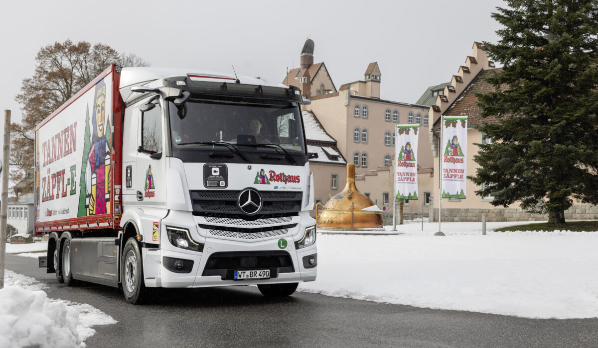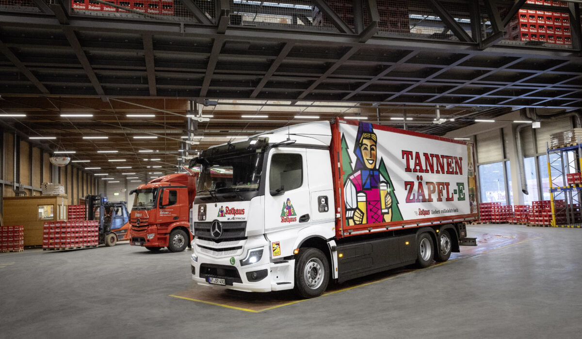 Od półtora roku Rothaus eksploatuje flotę pięciu w pełni elektrycznych ciężarówek Mercedes-Benz eActros 400 pierwszej generacji. Pojazdy te służą do dystrybucji regionalnej, niezawodnie dostarczając klientom piwa Rothaus. Rezultaty są pozytywne: eActrosy 400 sprawdziły się w wymagających warunkach codziennej eksploatacji – zarówno pod względem zasięgu i infrastruktury ładowania, jak i niezawodności oraz komfortu jazdy.