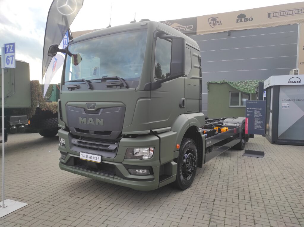 Na MSPO 2025 typowo cywilne ciężarówki marki MAN stały na kilku stoiskach. Na ekspozycji wrocławskiej Grupy Rekord, a dokładnie jej spółki zależnej Elbo i wydzielonego działu wojskowego Elbo Defence, stał pochodzący z ostatnich dostaw.