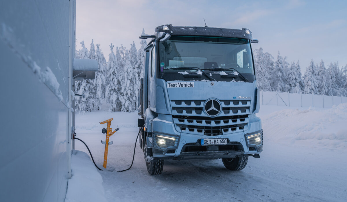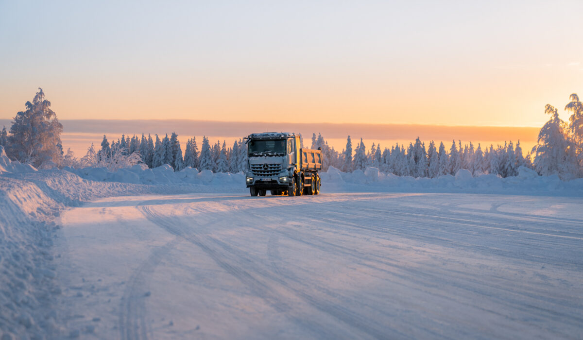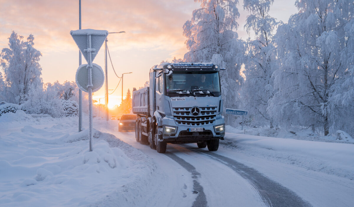 Premierowy, zasilany akumulatorem Mercedes-Benz eArocs 400 – przeznaczony do eksploatacji w budownictwie miejskim – pomyślnie przeszedł intensywne testy zimowe w ekstremalnych warunkach. W temperaturach sięgających -20°C, ten lokalnie bezemisyjny i cichy elektryczny samochód na początku roku został poddany specjalistycznym próbom na śniegu i lodzie w pobliżu fińskiego koła podbiegunowego, aby zapewnić jego sprawność operacyjną nawet w trudnych warunkach zimowych. Sprawdziany te koncentrowały się między innymi na trakcji i stabilności jazdy eArocsa 400 na drogach pokrytych śniegiem i lodem, sprawności rozruchu na zimno, zachowaniu akumulatora i przebiegu ładowania w ekstremalnie niskich temperaturach oraz na wydajności elektrycznego układu napędowego i rekuperacji w warunkach zimowych. Michael Kimmich, dyrektor ds. rozwoju eArocsa 400, powiedział „Zimowe testy w Finlandii postawiły przed eArocsem 400 wymagające wyzwania w suchych, ekstremalnie niskich temperaturach, które pojazd zdał celująco. Dzięki stabilnemu prowadzeniu oraz zasięgowi i profilowi ładowania mieszczącemu się w oczekiwanych parametrach, potwierdził on swoje możliwości”. I dodał „Testy w ekstremalnych warunkach zimowych dostarczyły inżynierom Mercedes-Benz Trucks kluczowych informacji do dalszej optymalizacji eArocsa 400 przed rozpoczęciem produkcji seryjnej i podkreślają ambicje firmy, aby dostarczać elektryczne pojazdy użytkowe do wymagających zastosowań całorocznych.