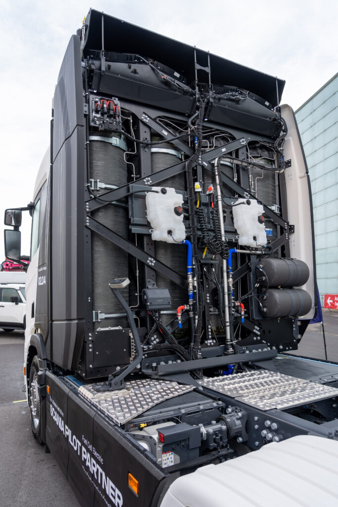 Prezentowana ciężarówka bazuje na elektrycznym układzie napędowym Scania, połączonym z systemem ogniw paliwowych. Ten system przekształca wodór w energię elektryczną, zasilającą silnik elektryczny. Jedyną emisją jest para wodna. Pojazd osiąga zasięg do 1000 kilometrów i jest testowany w rzeczywistych warunkach transportu. Połączenie dużego zasięgu, krótkiego czasu tankowania i sprawności elektrycznej sprawia, że ogniwa paliwowe są szczególnie atrakcyjne w transporcie długodystansowym. Dzięki tej technologii Scania rozszerza swoją strategię opartą na wielu rodzajach energii – od pojazdów elektrycznych zasilanych akumulatorami i biopaliw po wodór – aby umożliwić przejście na rozwiązania transportowe bez paliw kopalnych, w zależności od zastosowania.