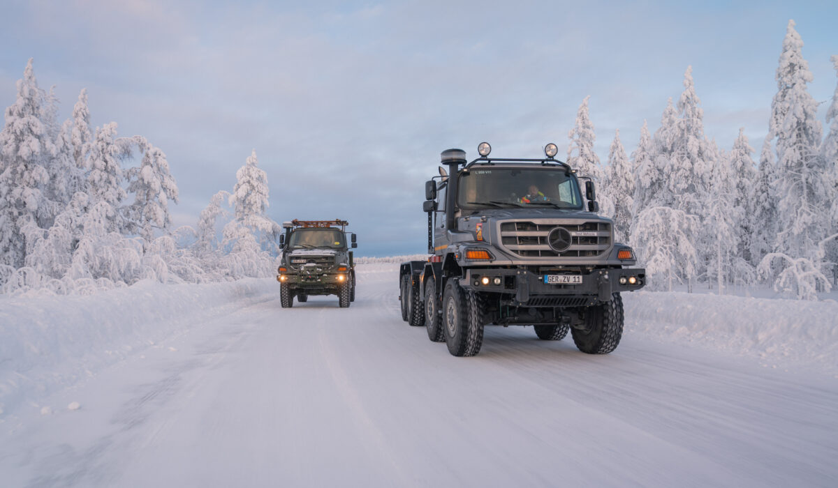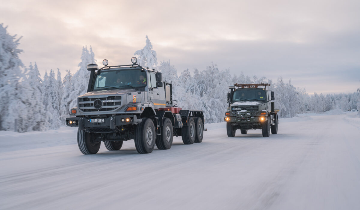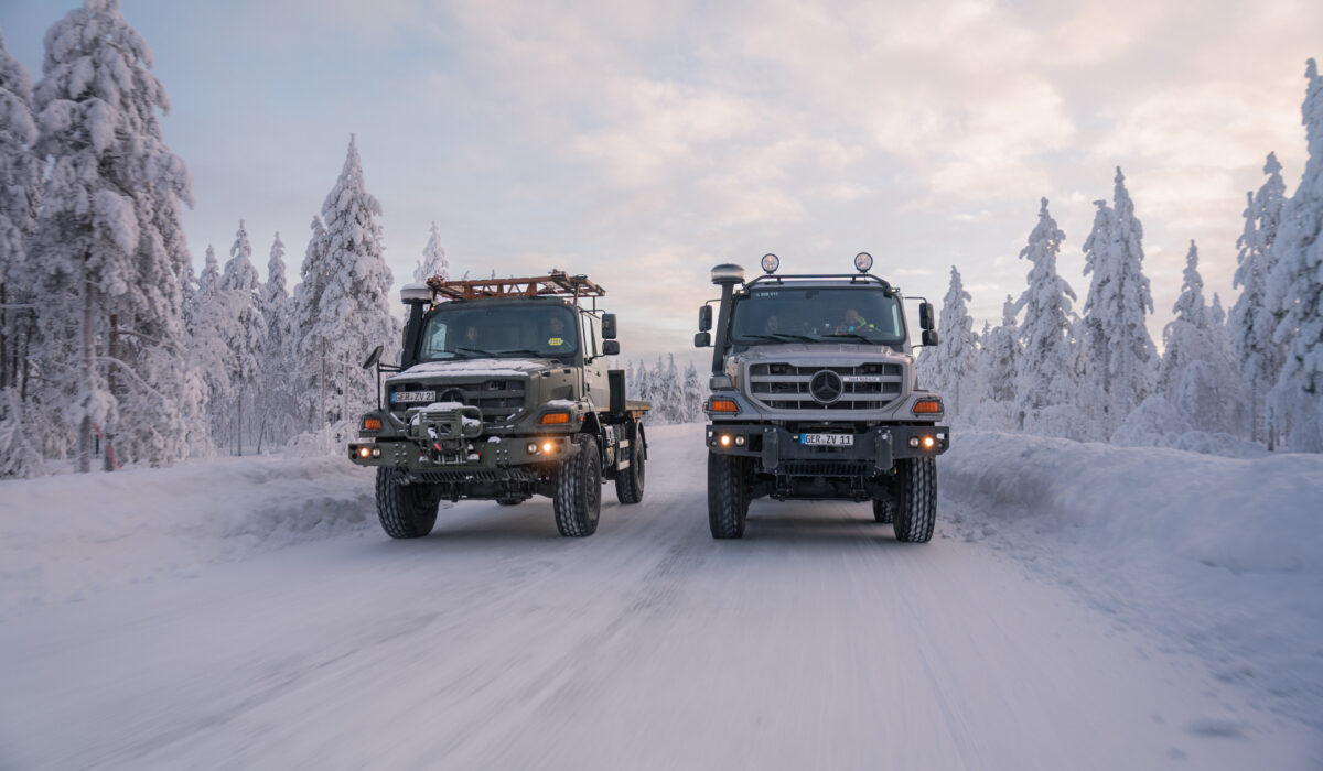 W ekstremalnych warunkach klimatycznych, mając na uwadze ewentualne długotrwałe wykorzystanie jego ciężarówek w ekstremalnie niskich temperaturrch, Daimler Truck poddał swoje pojazdy Mercedes-Benz Zetros Defence intensywnym testom na fińskim kole podbiegunowym. Podczas tych prób zimowych na początku roku temperatury na miejscu spadły do minus 20 stopni Celsjusza, a odcinki sprawdzianu były przeważnie oblodzone i pokryte grubą warstwą śniegu – wyjątkowe warunki do walidacji na miejscu. Celem tych testów, które zespół ekspertów Mercedes-Benz Special Trucks przeprowadził przez kilka tygodni na początku roku, było sprawdzenie niezawodności działania pojazdów nawet w wyjątkowo trudnych warunkach zimowych.