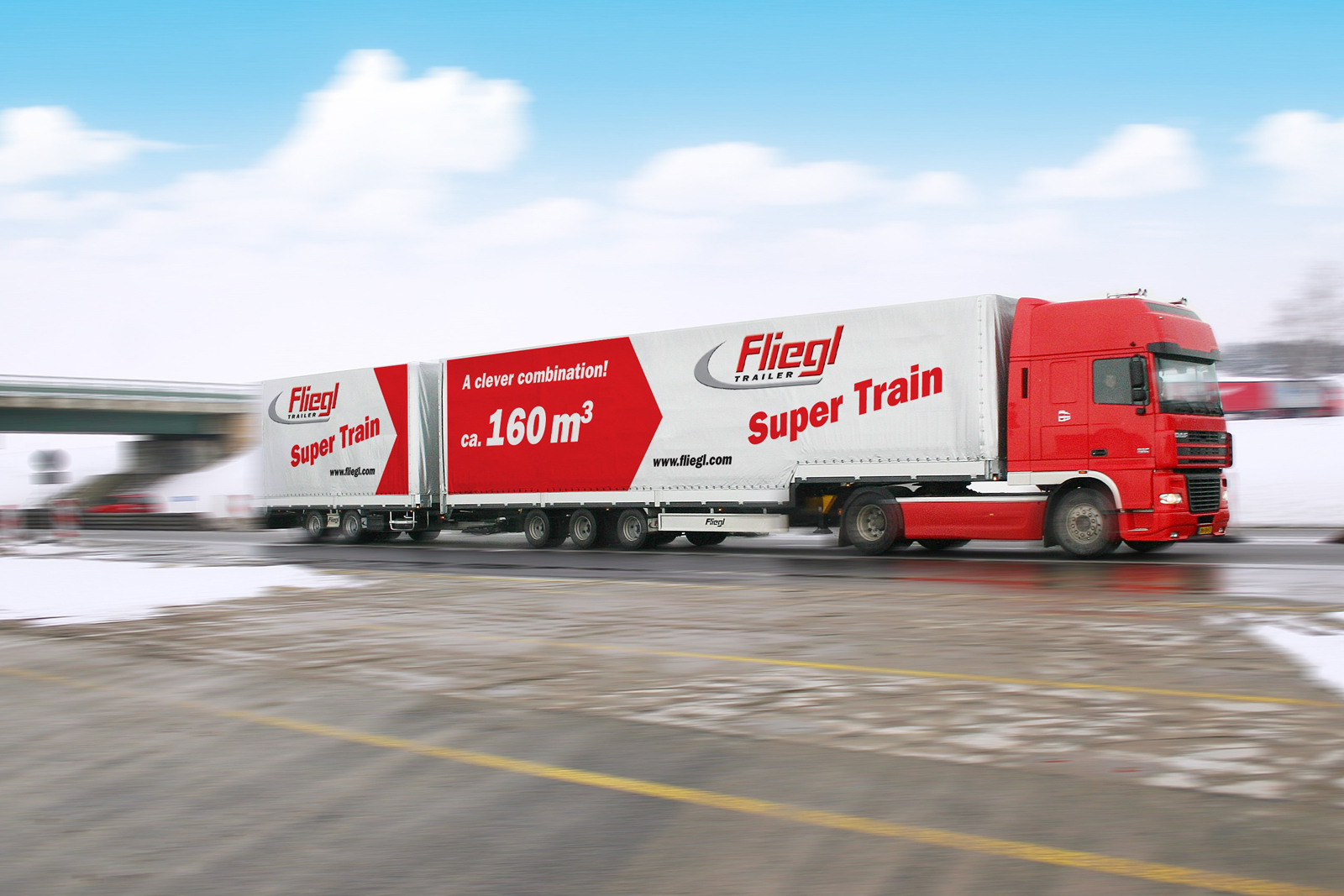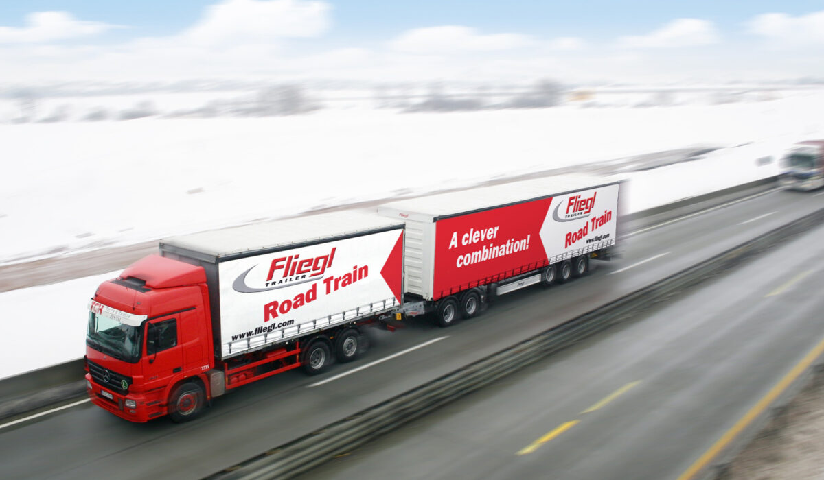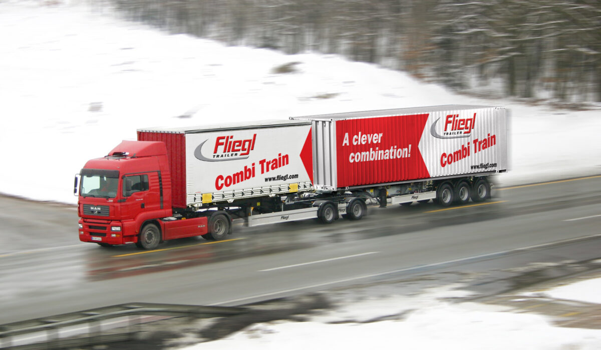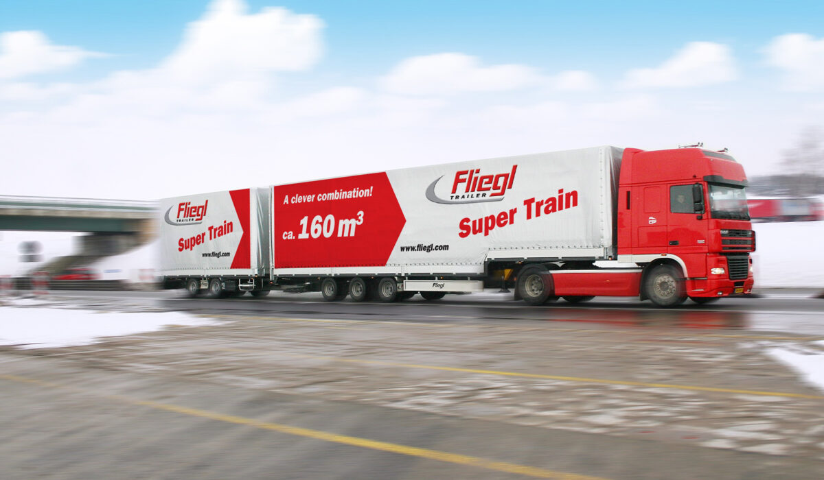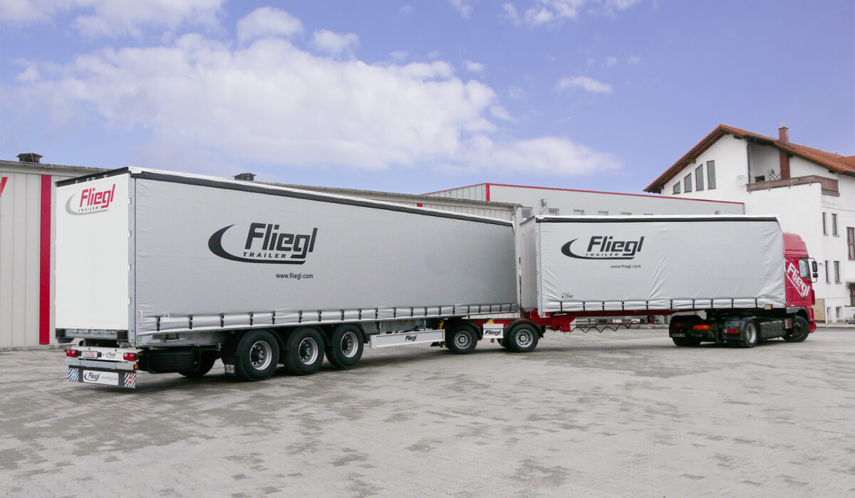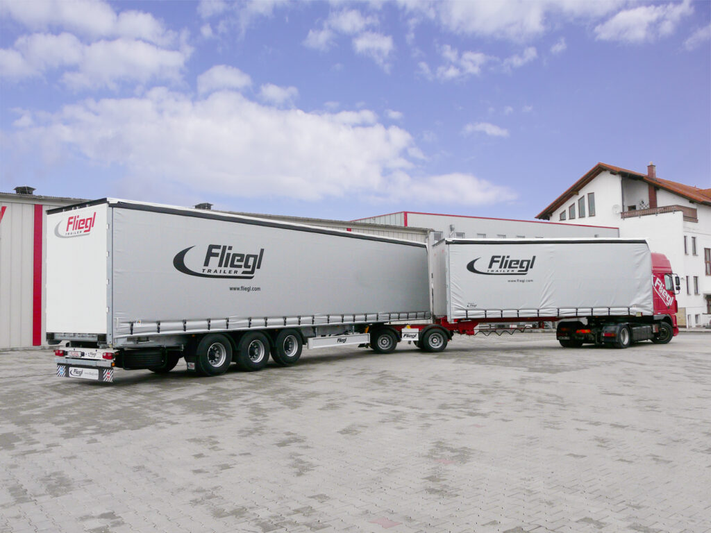 – podwozia 2- lub 3-osiowe, 2-osiowy tzw, wózek łącznikowy dolly oraz ponownie standardowe, 3-osiowe naczepy o długości 13,6 m.